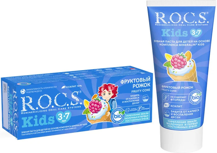 R.O.C.S. Зубная паста детская со вкусом мороженого «Фруктовый рожок»