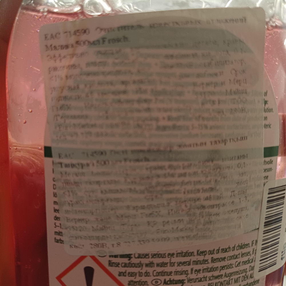 Frosch Гель для мытья посуды «Малина»+70 густая консистенция приятный запах хорошо отмывает экономичный расход