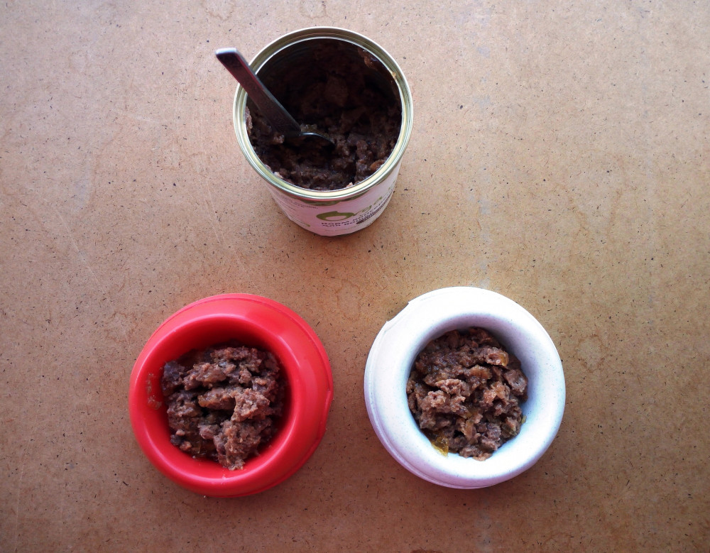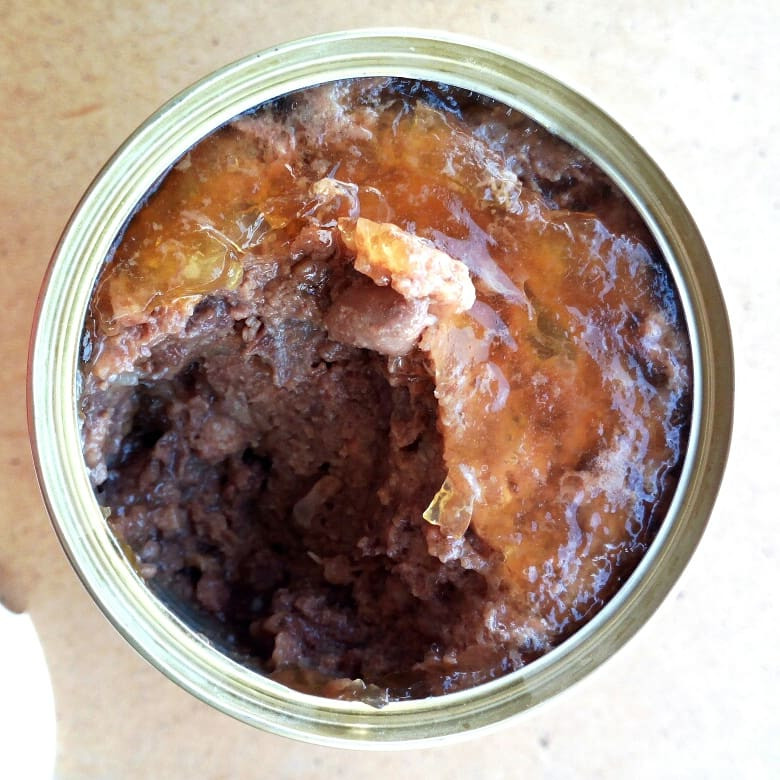 Кошки налетели на эти консервы, словно саранча. Запах мясной, консистенция похожа на тушенку. Расход очень экономный, кошкам хватило три-четыре чайных ложечки каждой, чтобы наесться. Остаток переложила в контейнер и убрала в холодильник.