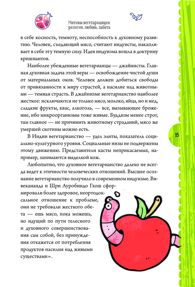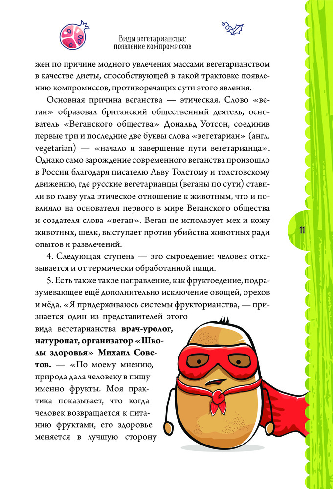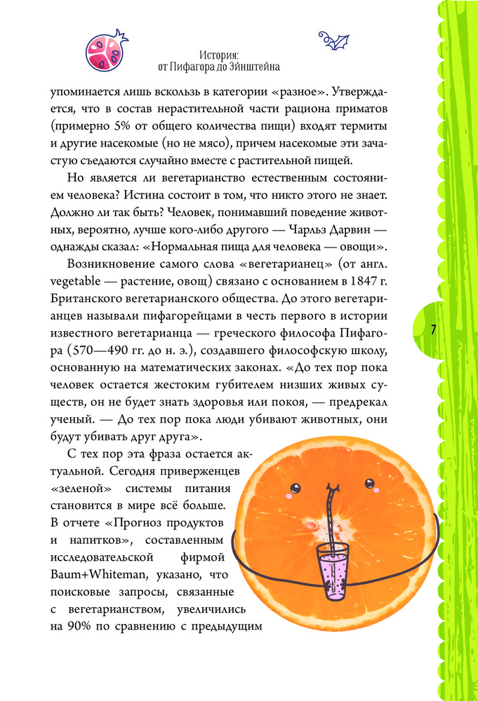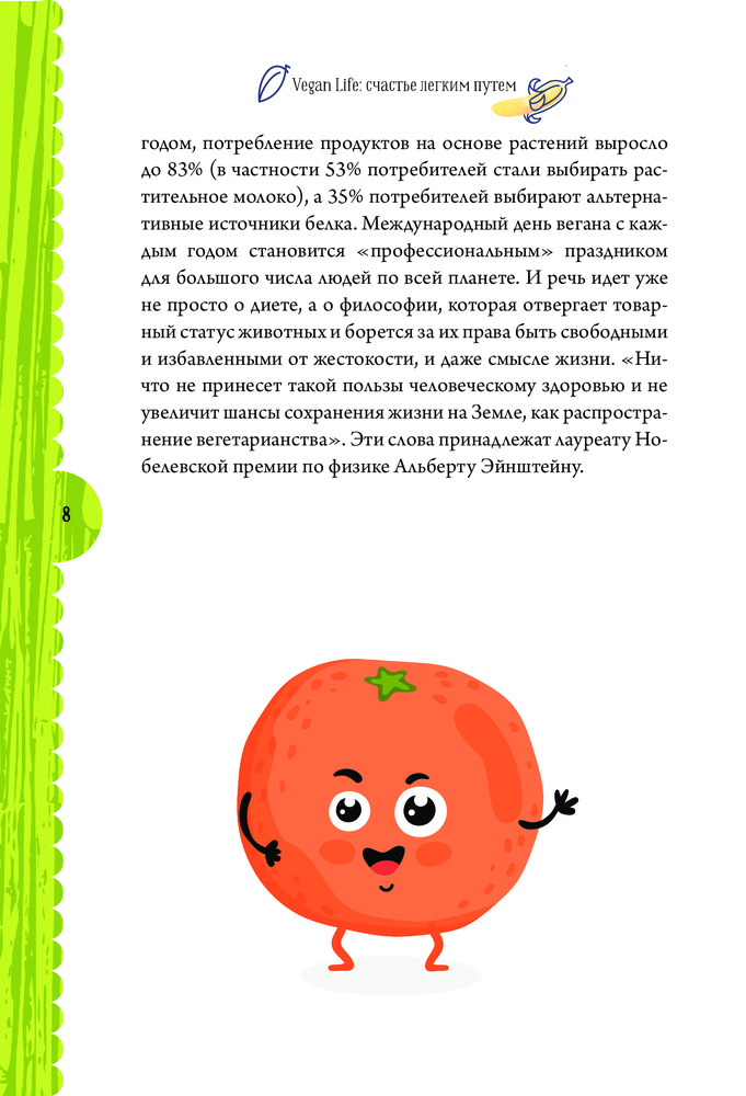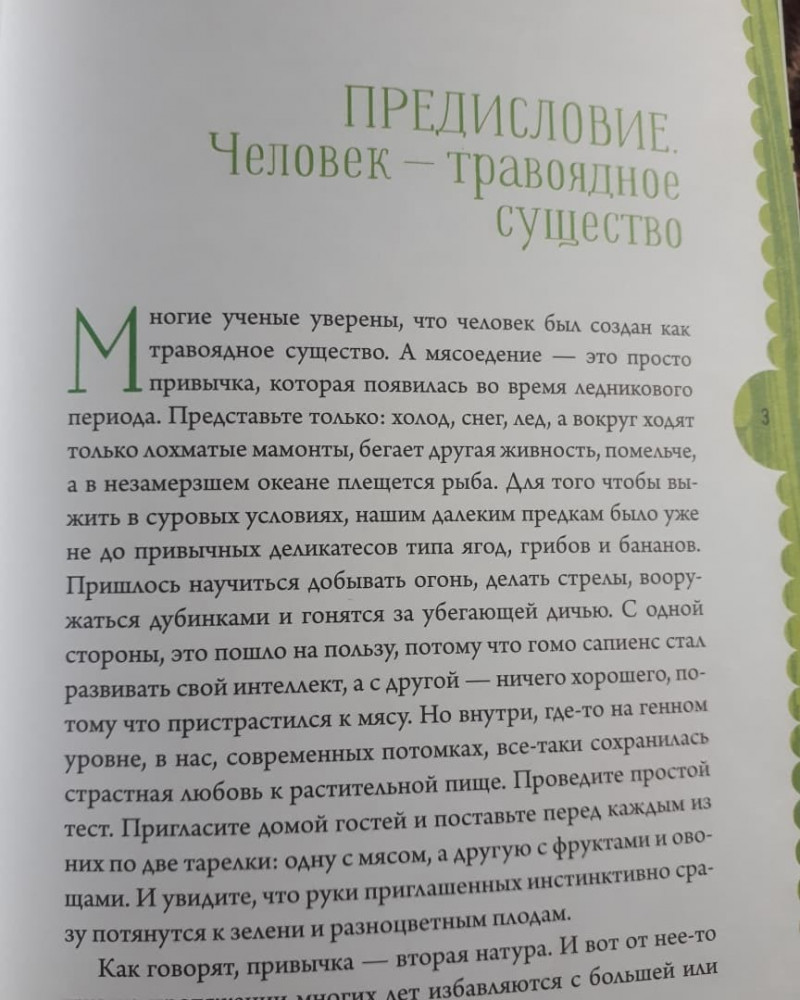 Отличная книга! Советую к прочтению 100%. Книга как маленькая энциклопедия, в ней есть все, факты о вреде мяса, как приручить ребёнка к овощам, рецепты, план питания, как перейти на вегетарианство и т.д Очень хорошо оформлена внутри, легко читается.