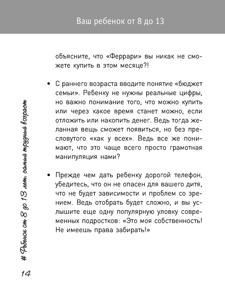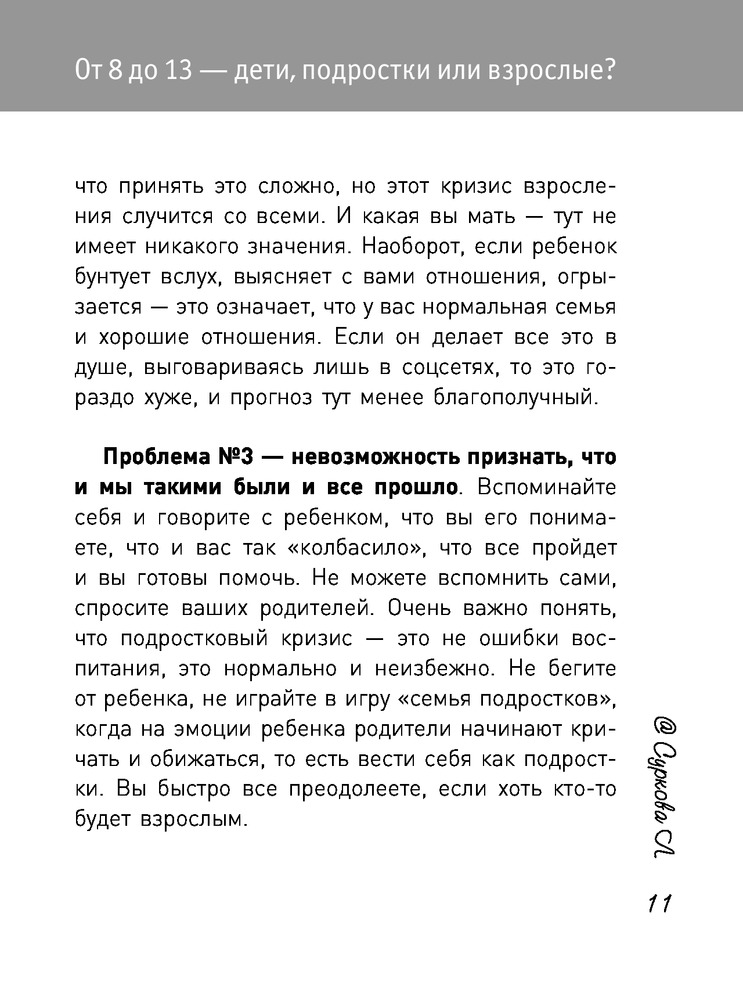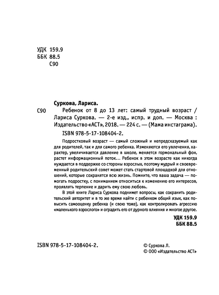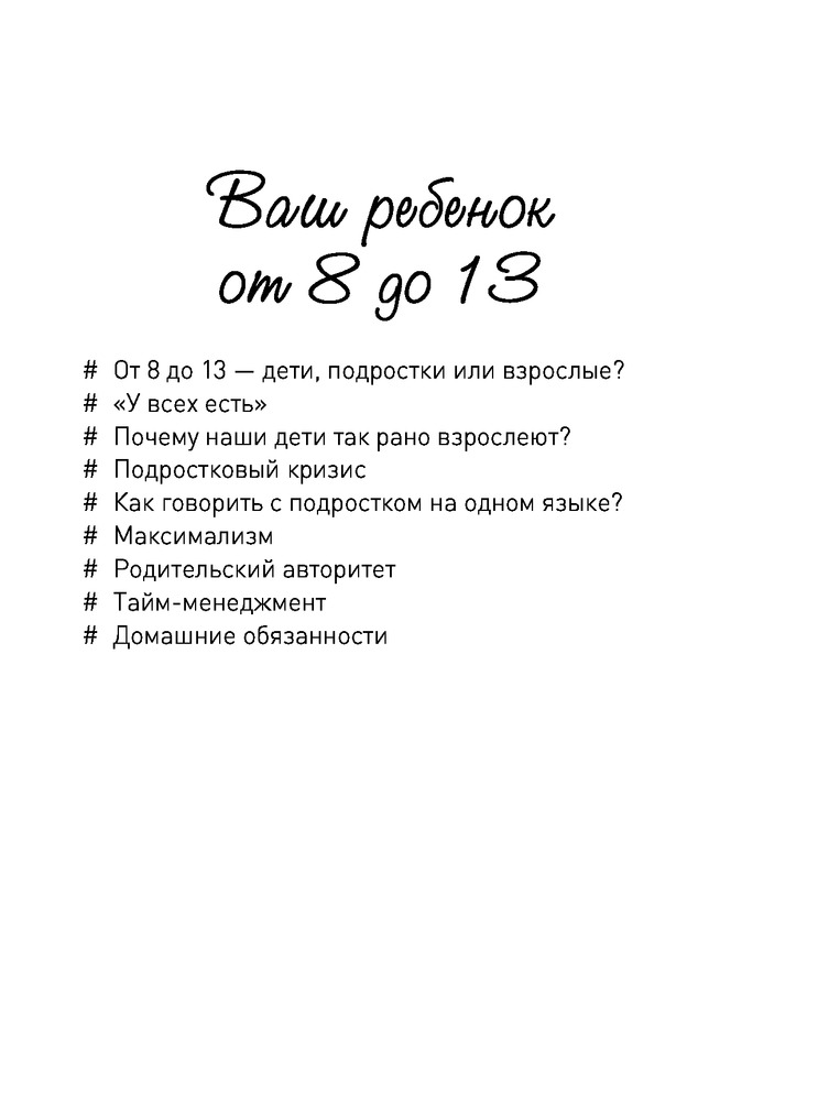 Ребенок от 8 до 13 лет. Самый трудный возрастВ данный момент этот товар отсутствует в продаже. Возможно, у нас найдется аналогичный или похожий товар здесь. Серия: Мама инстаграма Подростковый возраст - самый сложный и непредсказуемый как для родителей, так и для самого ребенка. Изменяются его увлечения, характер, увеличивается давление в школе, меняется гормональный фон, растет информационный поток… Ребенок в этом возрасте как никогда нуждается в поддержке со стороны взрослых, поэтому мудрый и своевременный родительский совет может стать стартовой площадкой для отношений, которые сохранятся всю жизнь. Помните, что ваша задача - помогать подростку, с пониманием относиться к изменению его интересов, проявлять терпение и дарить ему свою любовь. |