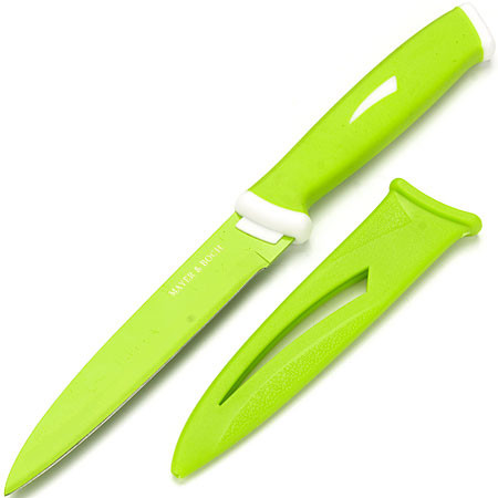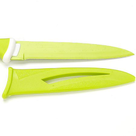 Нож с лезвием из высококачественной нержавеющей стали станет незаменимым помощником на Вашей кухне. Лезвие имеет специальное Non-Stick покрытие, предотвращающее прилипание продуктов к лезвию ножа. Поверхность клинка легко моется, не впитывает и не «передает» запахи пищи при нарезке различных продуктов. Благодаря своей форме и компактному размеру, нож идеально подходит для очистки различных овощей и фруктов. Эргономичная рукоятка ножа удобно ложится в ладонь, обеспечивая безопасную работу, комфортное положение в руке, надежный захват и не дает ножу скользить при использовании. Нож имеет полипропиленовый чехол, обеспечивающий безопасность при хранении.