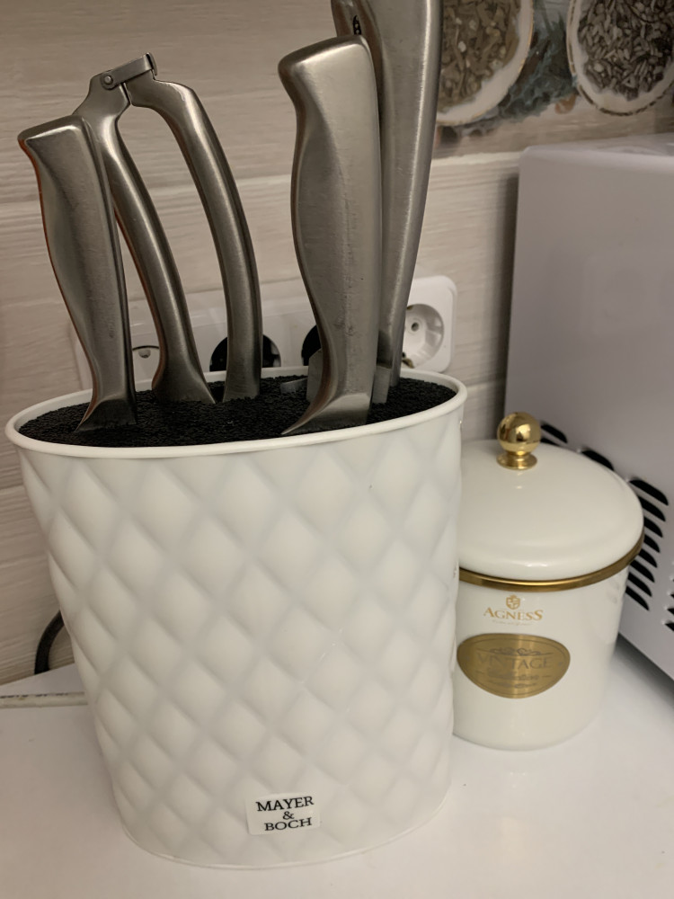 Подставка хорошая, внутренняя часть вынимается для удобного мытья. Ножи не проваливаются. При покупке советую писать чтобы хорошо упаковали так как пластик может повредиться при транспортировке. На второй раз пришла целая!