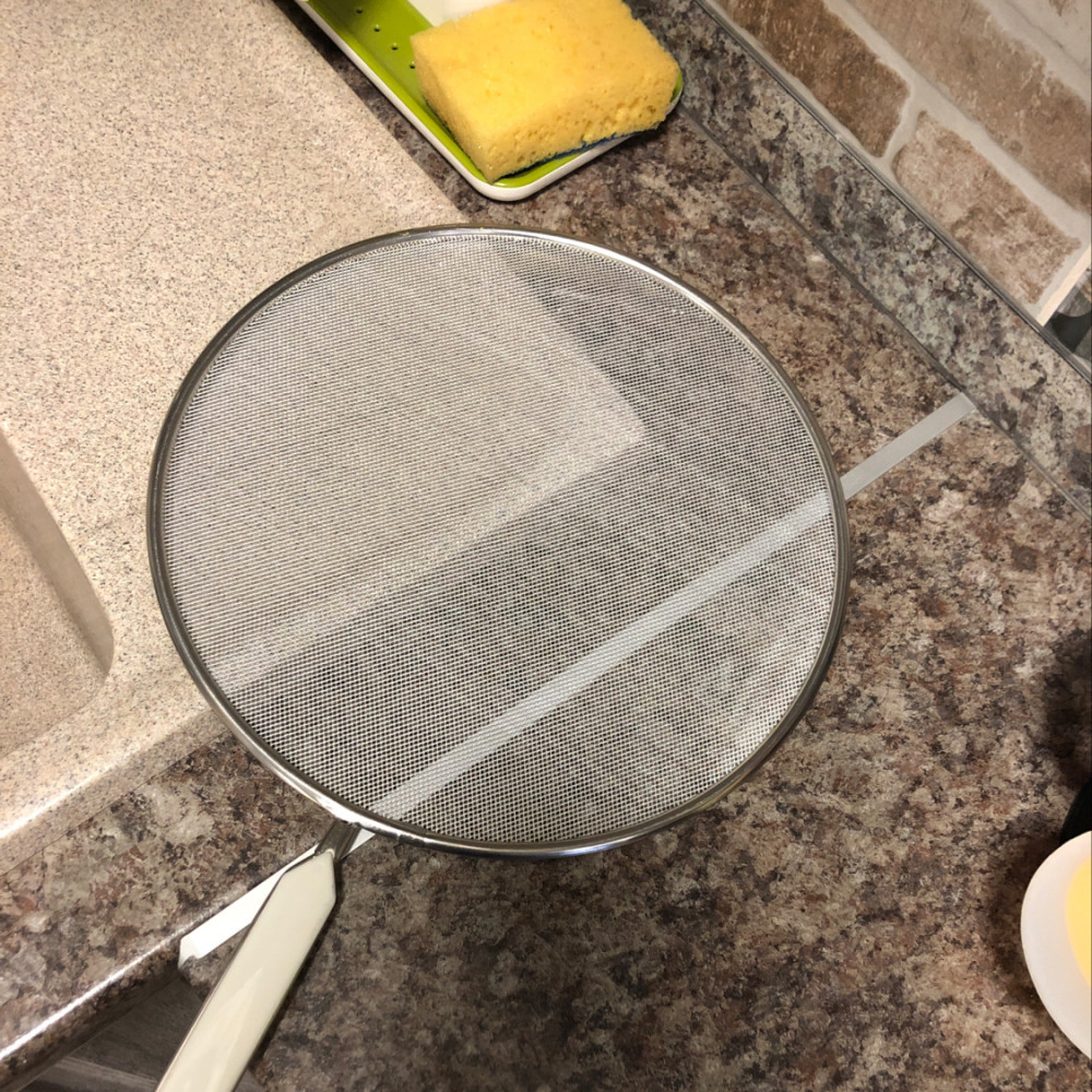 Большие дырочки в сетке, те экраны что с красной ручкой на flip продаются получше, там сетка более плотная и качество лучше. Но зато в этой серии размер 30 см, на большую сковороду.