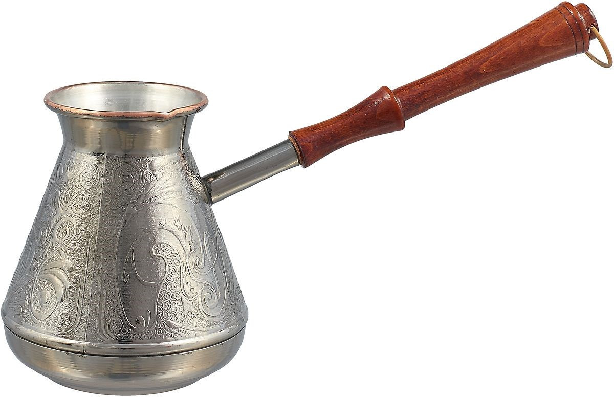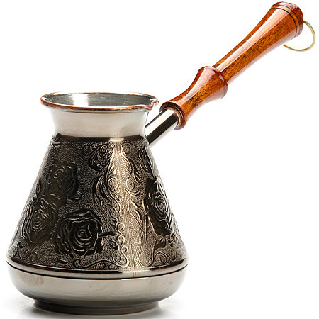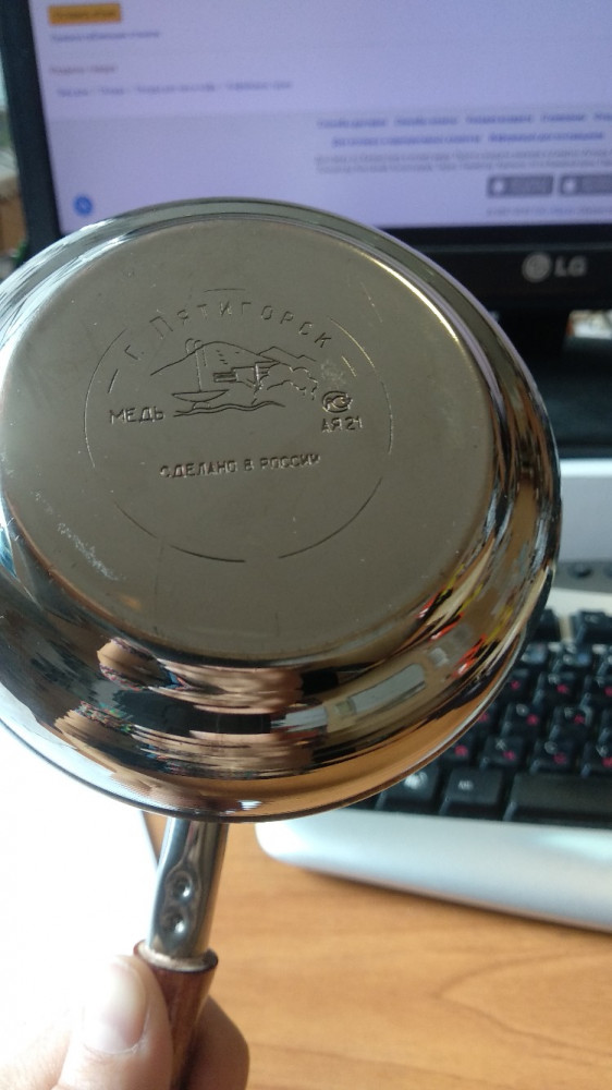 Турка удобная, ручка сделана качественно. У меня рисунок на турке - парусники. Что любопытно - на наклейке написано, что изготовил Китай, а на самой турке выбито - Россия, Пятигорск.