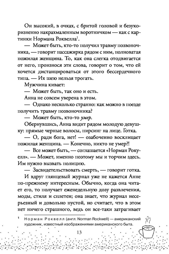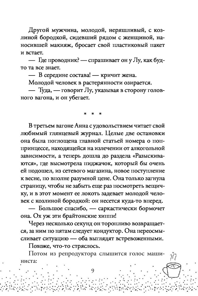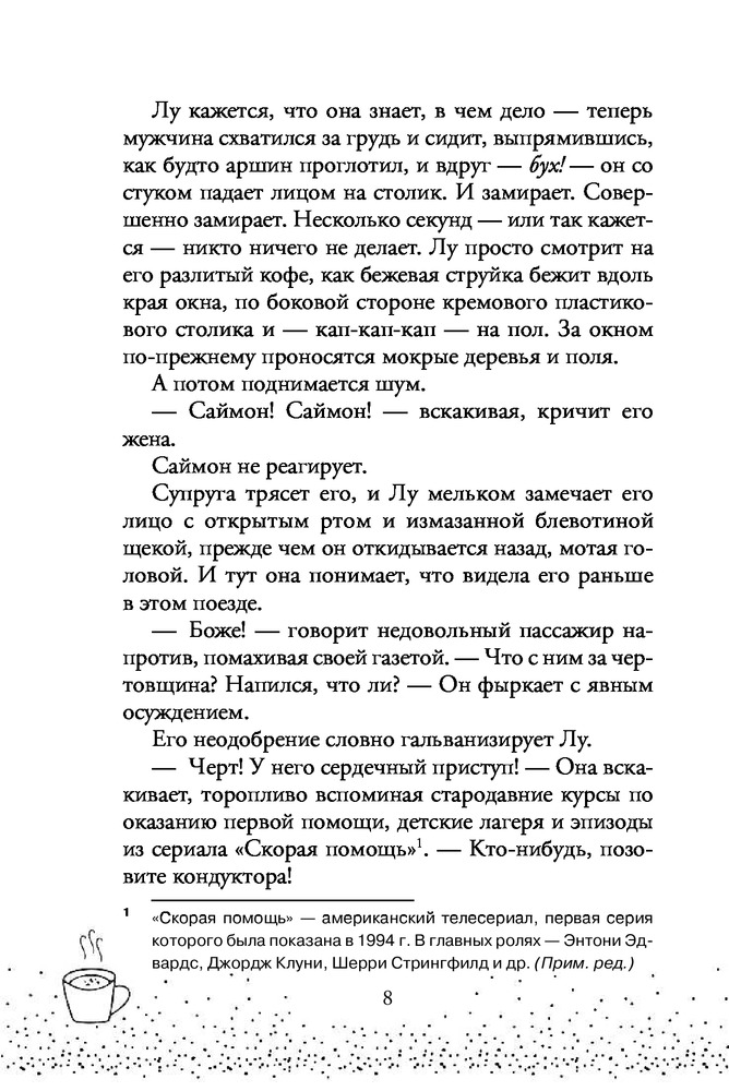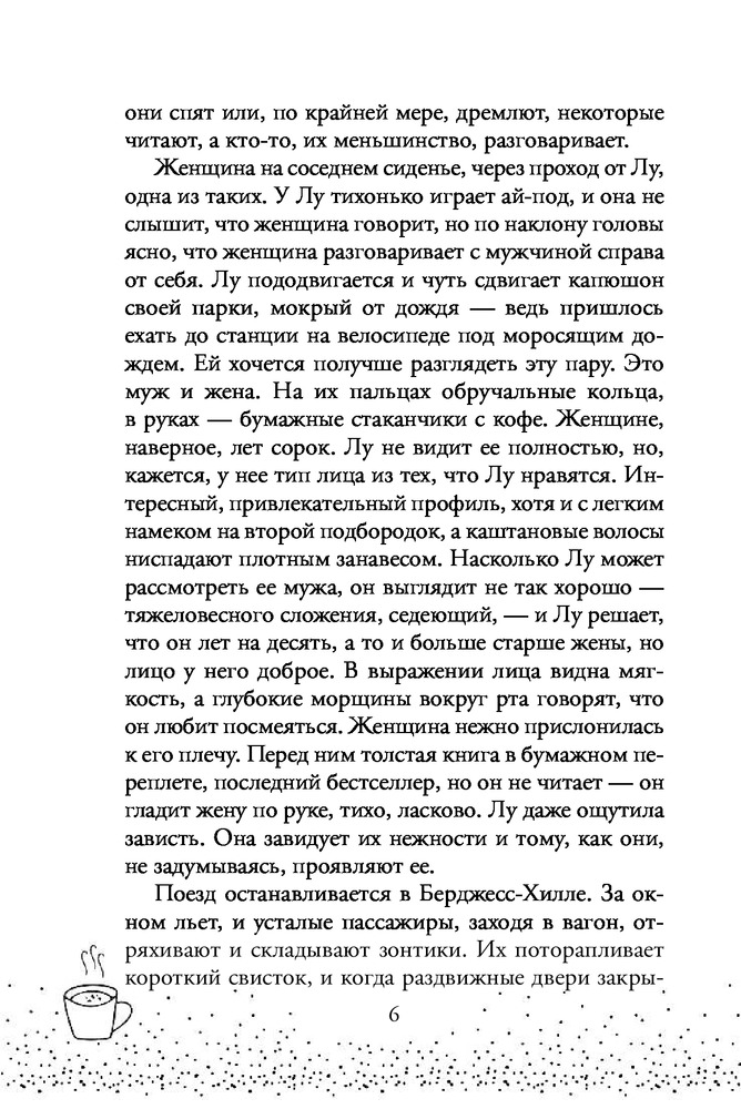 По названию и описанию надеялась на легкую интересную историю, однако меня ждало глубокое психологическое чтиво, пропитанное горем и грустью. Книга не понравилась, потому что не попала под настроение. Совсем не хотелось грустить и сопереживать героям. Но нужно отдать должное автору: хорошо прописаны характеры героев, их чувства и поступки. Все персонажи очень реальные. Они - обычные люди со своими маленькими радостями, проблемами, комплексами и, конечно же, горем, которое их объединило и поменяло судьбу. Временами мне было скучно из-за откровенной повседневности. Испытала облегчение, когда дочитала ее.