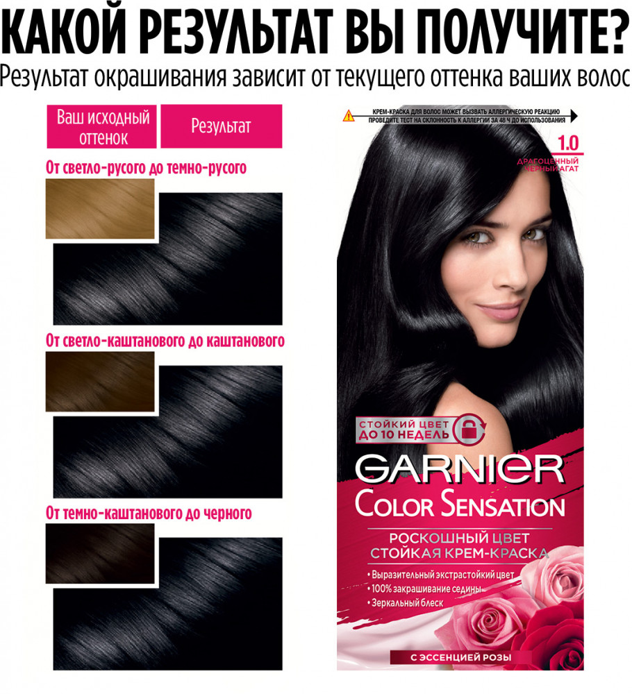 Garnier Крем-краска для волос стойкая «Color Sensation, Роскошь цвета», оттенок 1.0 Драгоценный черный агат