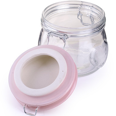 Очень понравилась эта баночка. Покупала для заготовок на зиму. Крышка- а'ля керамика, можно стерилизовать банку в духовке, если снять силиконовый ободок. Крышка закрывается плотно.