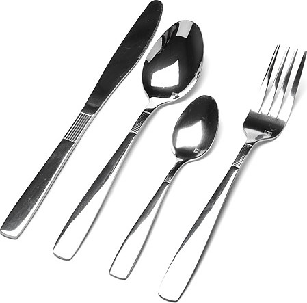 Набор из 24-х предметов включает в себя: 6 столовых ложек, 6 вилок, 6 ножей и 6 чайных ложек. Благодаря качественной полировке, изделия сохраняют прекрасный внешний вид на долгое время.
