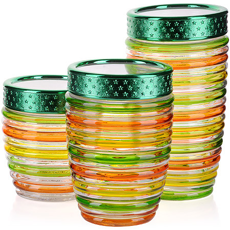 Mayer & Boch Набор банок для сыпучих продуктов (3 шт)В данный момент этот товар отсутствует в продаже. Возможно, у нас найдется аналогичный или похожий товар здесь. Набор из 3-х банок для сыпучих продуктов выполнен из высококачественного стекла с декоративным рисунком. Банки предназначены для хранения различных сыпучих продуктов: сахара, кофе, муки, соли, круп, макаронных изделий и т.п. Цветные пластиковые крышки плотно завинчивается и препятствует проникновению влаги и посторонних запахов. Необычная и оригинально оформленная банка украсит любую кухню. Изделие не впитывает запахи и легко моется. |