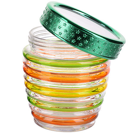 Красивые, блестящие крышки, рисунок на крышах звездочки, с прозрачной вставкой сверху. Крышки из пластика, закручивающиеся. Банки из стекла, рисунок нанесен сверху, смывается при мытье в посудомойке. При ручной мойке остался прежним ярким. Банки очень вместительные, высокие, см на размеры.