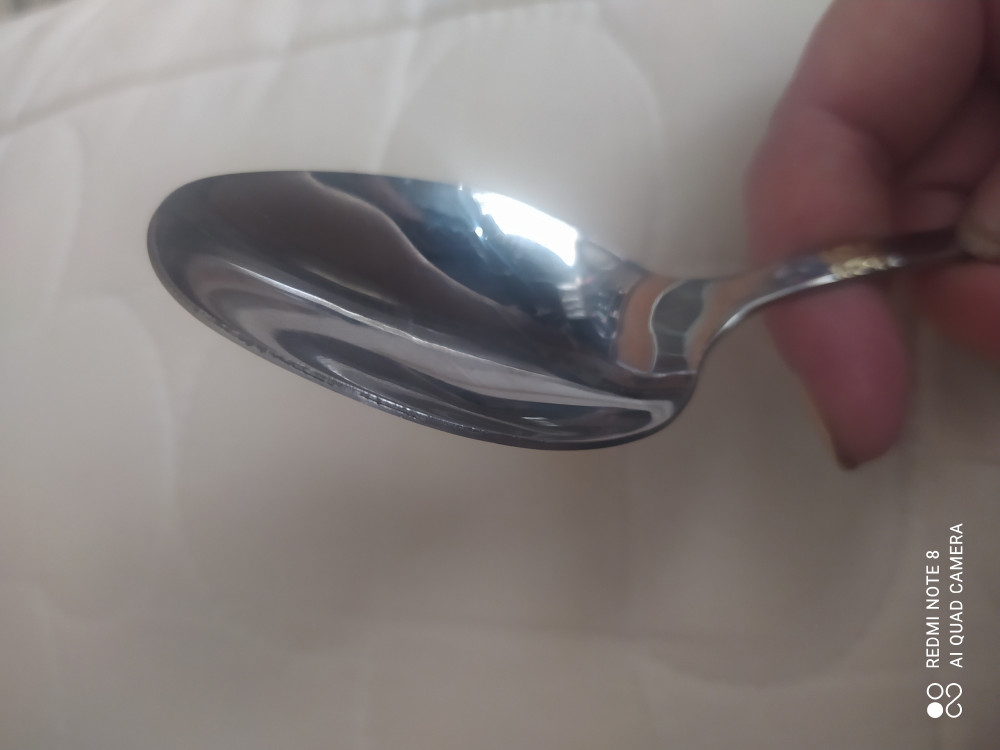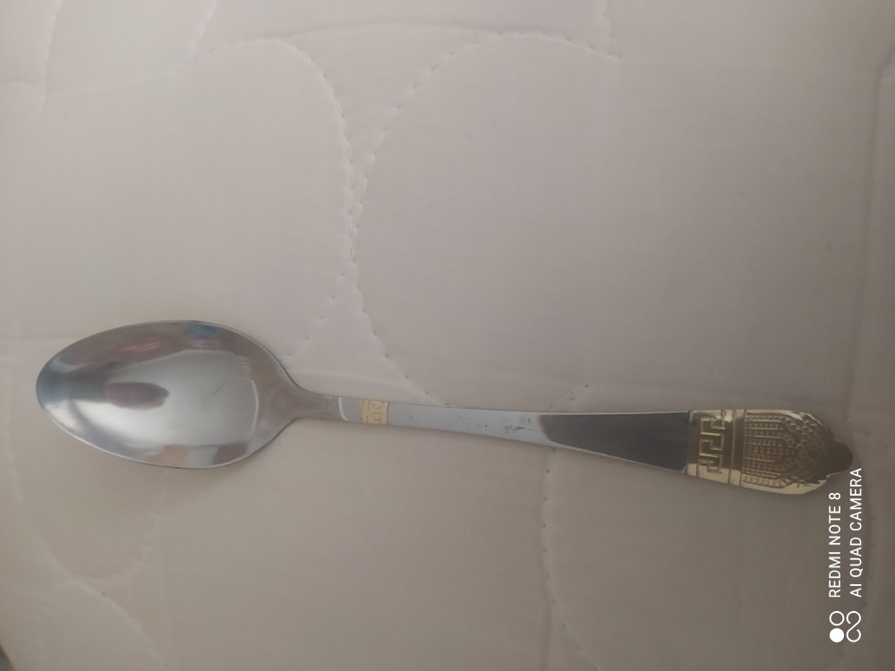 Края обточенны ужасно, на металле пятно и пропуски обработки металла, рисунок не четкий. Разочарована товаром. Заказала вилки, чайные ложки и столовые по 6 шт, и на всех одинаковый брак, смотрите фото.