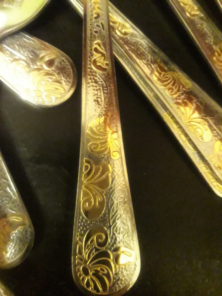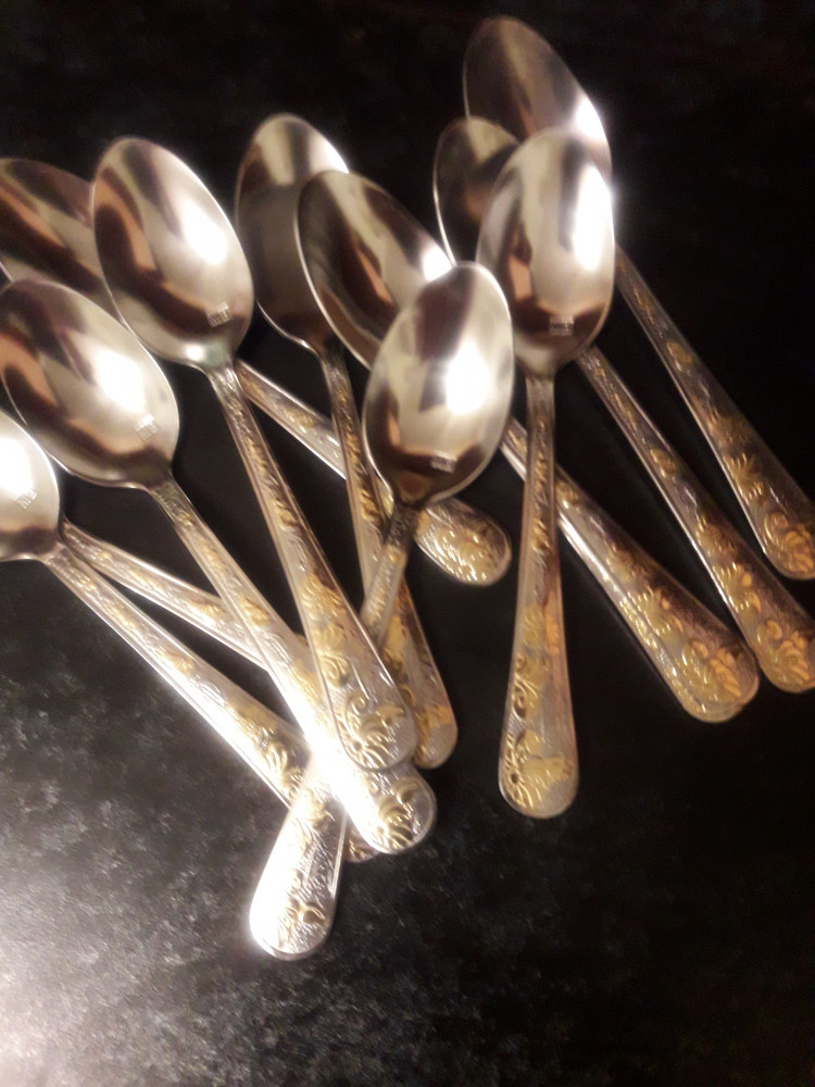 Хорошие ложки. Сталь не тонкая. Красивый рисунок на ручке. Удобно держать в руке.