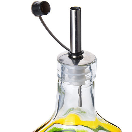 Бутылка тяжелая и массивная, но удобная, есть специальная крышка чтобы аккуратно капать масло на сковороду и эту крышку при необходимости можно снять