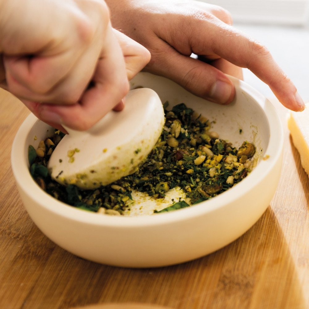 BergHOFF Ступка большая с пестиком (17,5 см)В данный момент этот товар отсутствует в продаже. Возможно, у нас найдется аналогичный или похожий товар здесь. Серия: Leo Ступка с пестиком изготовлена из качественной керамики. Она станет незаменимой вещью для приготовления свежемолотых специй и приправ, измельчения трав, а также таблеток. Свежемолотые специи имеют более насыщенный аромат, поэтому с такой ступкой ваши блюда всегда будут вкусными и ароматными. В набор входит ступка и пестик. |