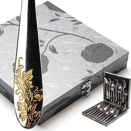 Богатая коробка, отлично на подарок. Приборы хорошего качества, рисунок красивый, хорошо упакованы. Но на мой взгляд столовые ложки немного маловаты по размеру.