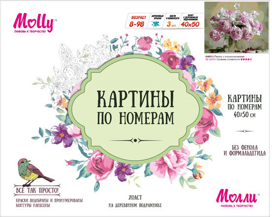 Molly Набор для раскрашивания по номерам «Пионы с колокольчиками» (40×50 см)В данный момент этот товар отсутствует в продаже. Возможно, у нас найдется аналогичный или похожий товар здесь. Серия: Картины по номерам С помощью инструментов и красок из набора можно нарисовать нежный букет из розовых пионов и белых колокольчиков. Рядом с вазой — блюдце с черешней. Акварельная техника делает картину очень живой, но при этом совсем не сложной в исполнении. |