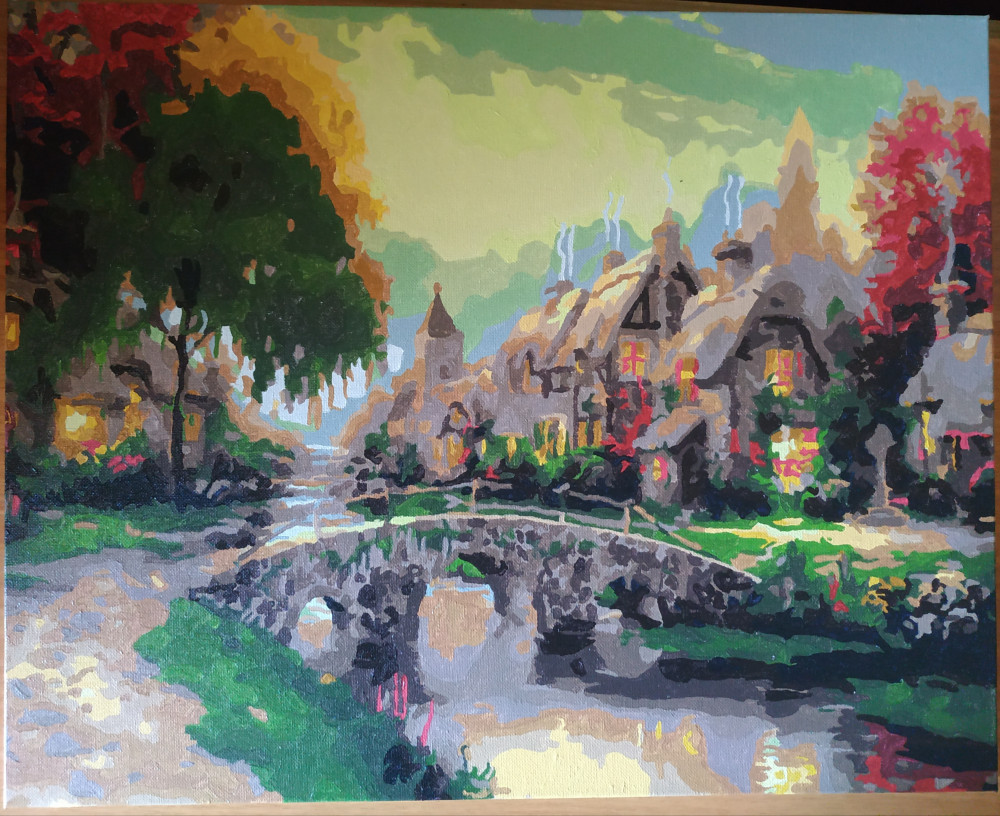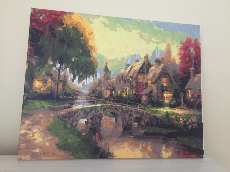 Картина пришла быстро, краски густые и яркие, цифры на холсте четкие, но из-за большого количества цветов они мелкие, также в описании указано наличие баночек акрила, на самом же деле их нет.