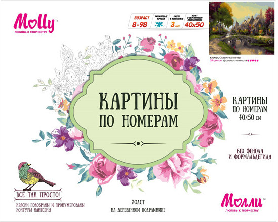 Molly Набор для раскрашивания по номерам «Сказочный вечер» (40×50 см)В данный момент этот товар отсутствует в продаже. Возможно, у нас найдется аналогичный или похожий товар здесь. Серия: Картины по номерам С помощью набора для рисования можно нарисовать загородный пейзаж: на берегу реки в зелени прячутся домики, манящие путника уютным светом в окнах. |