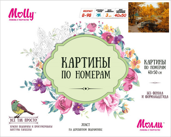 Molly Набор для раскрашивания по номерам «Очарование осени» (40×50 см)В данный момент этот товар отсутствует в продаже. Возможно, у нас найдется аналогичный или похожий товар здесь. Серия: Картины по номерам Защитить готовую картину от воздействия ультрафиолетовых лучей и влаги поможет акриловый лак в наборе. Перед использованием его необходимо разбавить водой в соотношении 1:1. Лак следует наносить на краску в качестве финишного покрытия. |