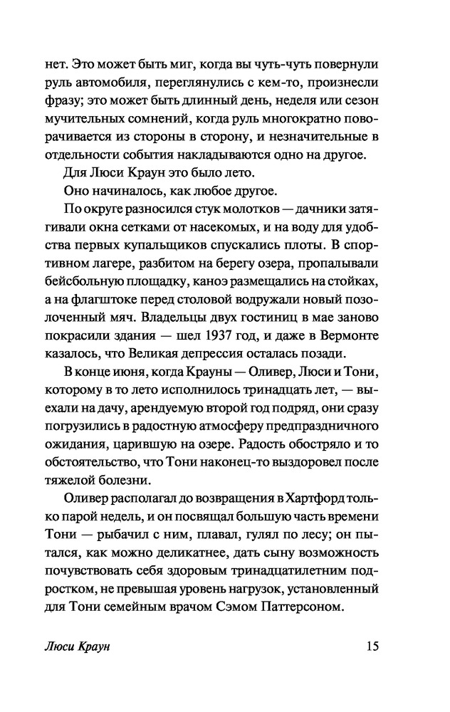 💳 Оплатить за товар можно при получении 🇰🇿 Есть бесплатная доставка по Казахстану от 1 дня 🎁 Копите бонусы с каждой покупки Серия: Эксклюзивная классика Брак Оливера и Люси Краун был образцом для подражания, предметом зависти соседей и друзей. Оливер — успешный богатый бизнесмен, Люси — красивая покорная жена, нежно любящая мать, ради семьи оставившая работу. Однако для того, чтобы понять, что их счастливый брак всего лишь иллюзия, потребовалось пятнадцать лет — и всего одно роковое лето. Оливер решает на все лето нанять гувернера для сына Тони, чтобы помочь мальчику оправиться от недавно перенесенной тяжелой болезни. За эту работу берется двадцатилетний студент по имени Джеф — и вместе с ним в жизнь Люси врывается нежданная любовь. И что это — безумная вспышка страсти, которая сгорает, не оставив следа? Неосознанный бунт женщины, подавленной самодовольной властностью мужа? Или трагедия непонимания и обиды, которой стала эта связь для случайно узнавшего о ней Тони?.. |
