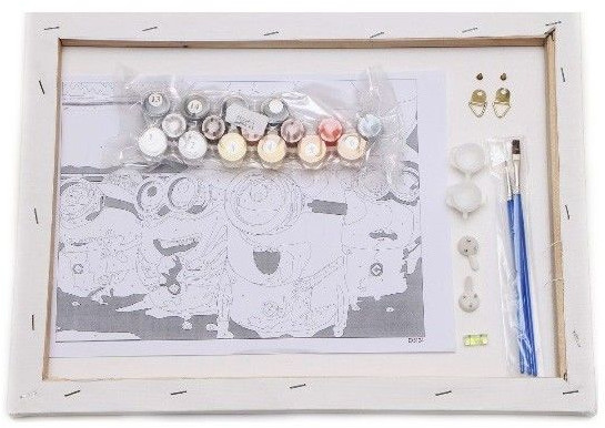 Состав набора: холст из натурального хлопка на деревянном подрамнике (холст предварительно прогрунтован), 3 нейлоновые кисти разного размера, профессиональные акриловые краски (устойчивые к выцветанию).