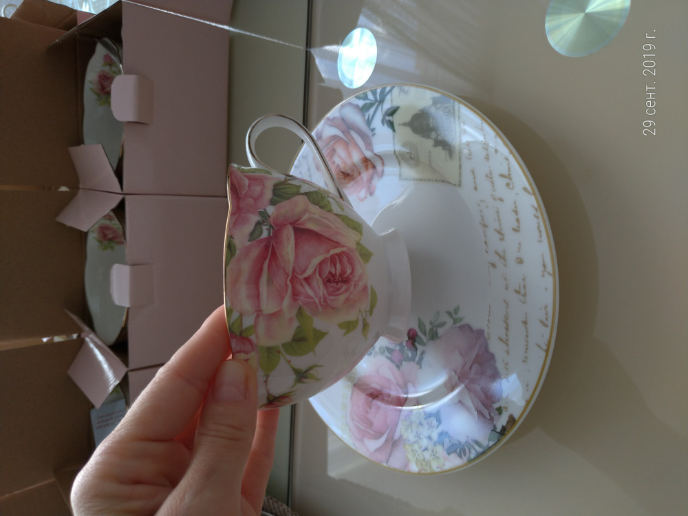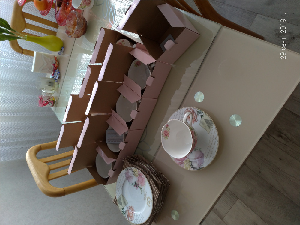 Я еще докупила себе бокальчики, чтоб получился сервиз. Выше оставляла отзыв об одной кружке, докупила еще. Но замерила мл там не 400, а 300! К бокальчикам заказала под тортик тарелочки, получился сервиз прям.