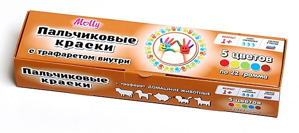 | Molly Пальчиковые краски с трафаретом «Домашние животные» (5 цветов)