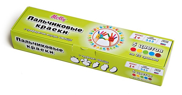 | Molly Пальчиковые краски с трафаретом «Овощи» (5 цветов)