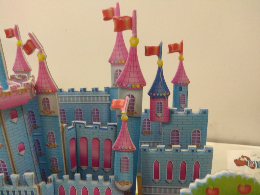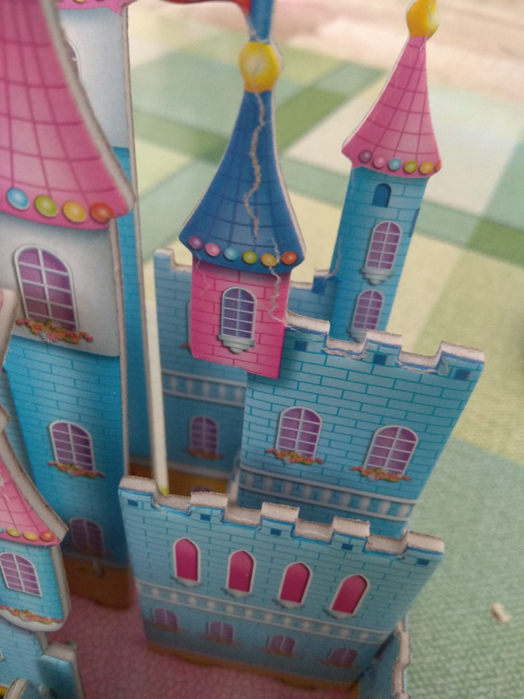 Картон ломкий, углы ровно не стоят, но ребенку нравится.