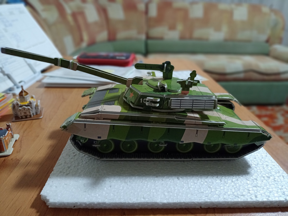 Пазл отличный. Но на мой взгляд, для 5 лет сложноват. Детали прорезаны плохо в местах крепления. Идея понравилась ! Сам танк большой, но для 5- летнего ребенка не доработан.