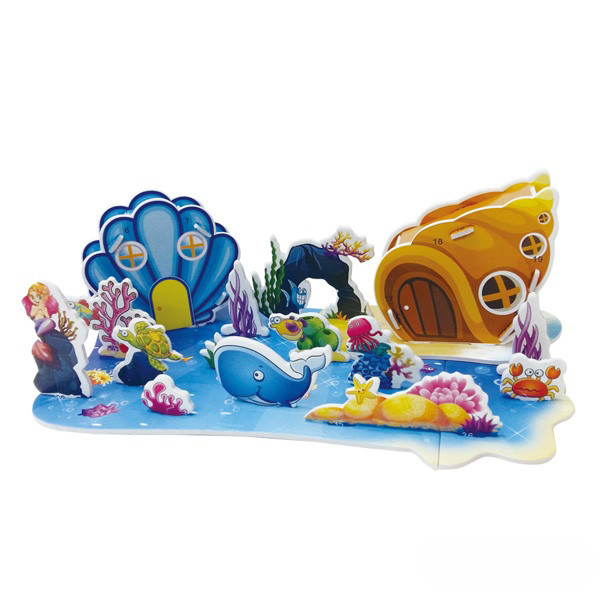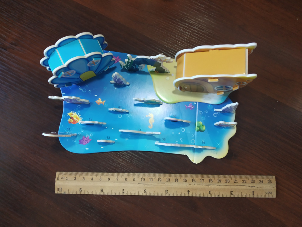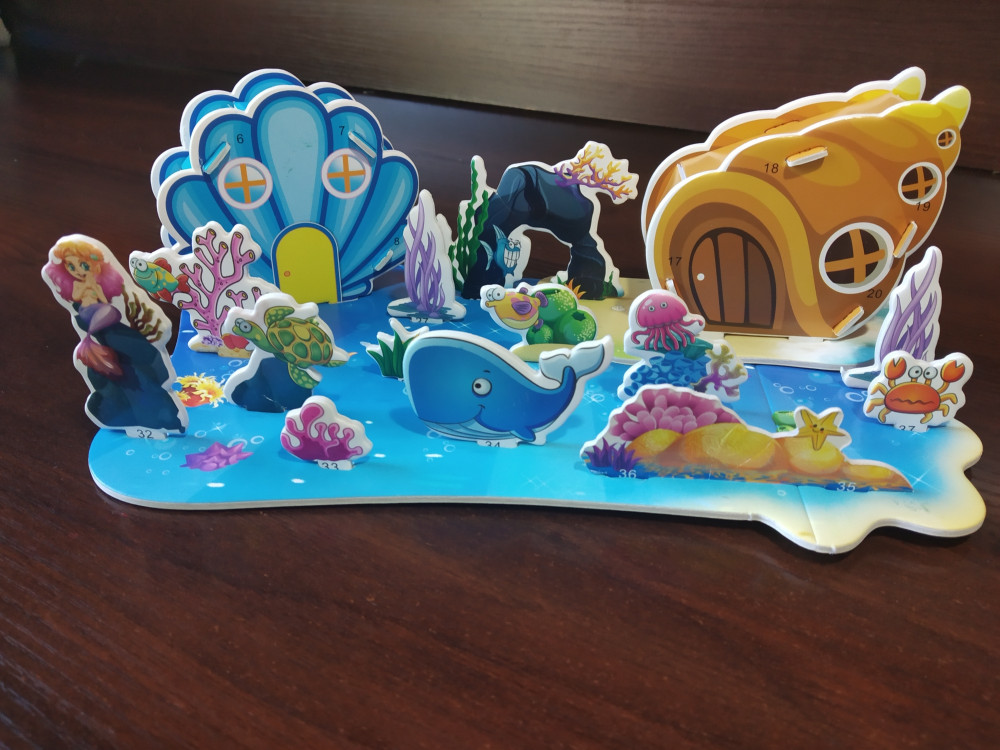Качество выполнения пазла хорошее. Пенокартон плотный, достаточно прочный. Собирается пазл хорошо, согласно инструкции. Внешний вихпосле сборки красивый, объёмный, нарядный. Действительно, отражает (в определённой степени, конечно) подводный мир.