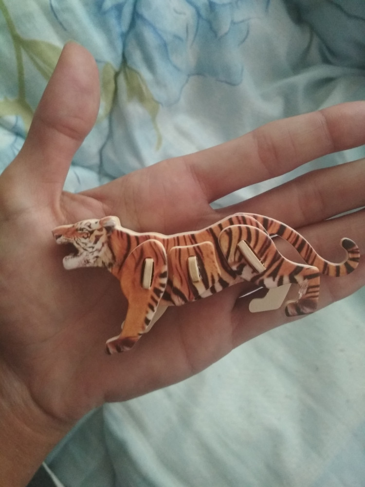 Тигр красивый, собирать интересно, но маленький и ещё одна нога выпадает, пришлось приклеить. А так ребенку 5 лет понравилось.