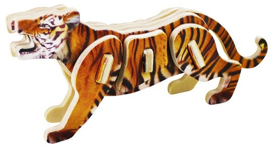В данный момент этот товар отсутствует в продаже. Возможно, у нас найдется аналогичный или похожий товар здесь. Серия: Животные Mini Из деревянных деталей пазла получается фигурка тигра в прыжке хорошо детализированная: пасть тигра, лапы, хвост, морда. Места соединения деталей не нужно проклеивать. Они легко, без усилия соединяются между собой.