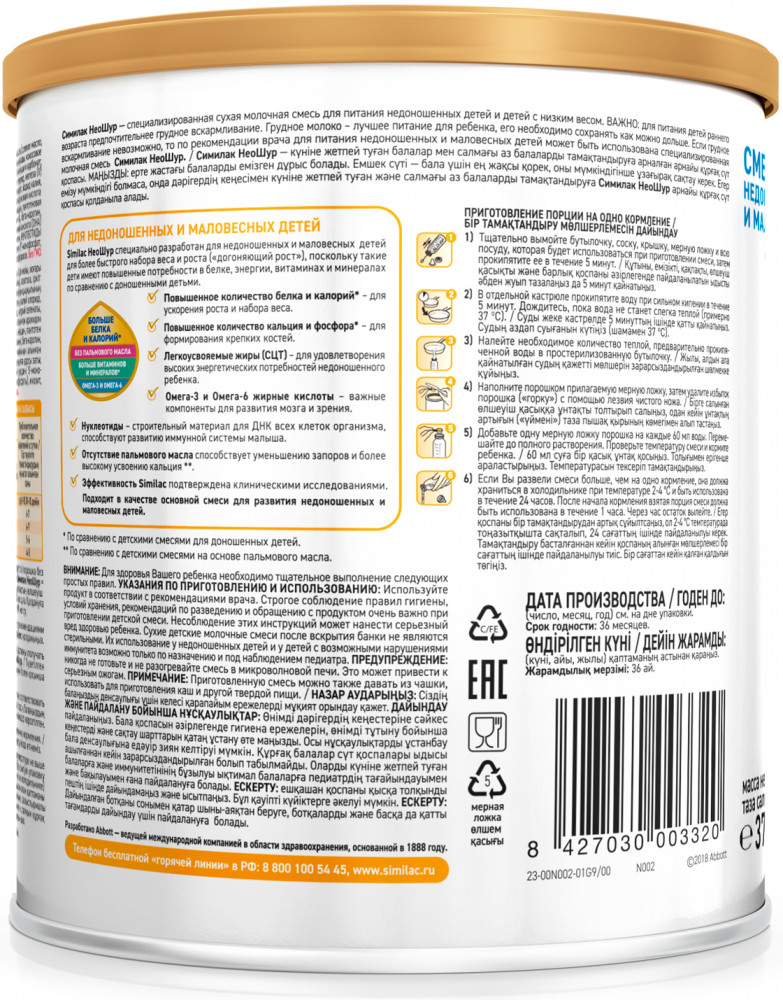 Similac Сухая смесь специализированная «НеоШур для недоношенных детей»В данный момент этот товар отсутствует в продаже. Возможно, у нас найдется аналогичный или похожий товар здесь. Специализированная сухая молочная смесь для питания детей с низким весом и недоношенных детей. Повышенное содержание питательных веществ смеси помогает обеспечить таким детям "догоняющий" рост. Здоровый рост и развитие содержит нуклеотиды, необходимые для укрепления иммунной системы ребенка, содержит уникальную смесь растительных жиров без пальмового масла, которая способствует формированию мягкого стула и оптимальному усвоению жиров и кальция, а также минерализации костной ткани, содержит сниженное количество лактозы, для уменьшения газообразования при лактазной недостаточности, специальный комплекс для ускорения роста. |