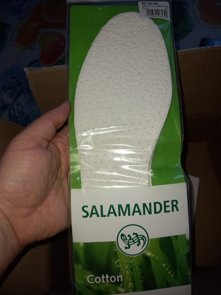 Х/Б стельки хорошо подходят для домашней, демисезонной обуви. Быстро сушатся, легко меняются на новые при необходимости. Фирму Salamander очень люблю, давняя их поклонница.