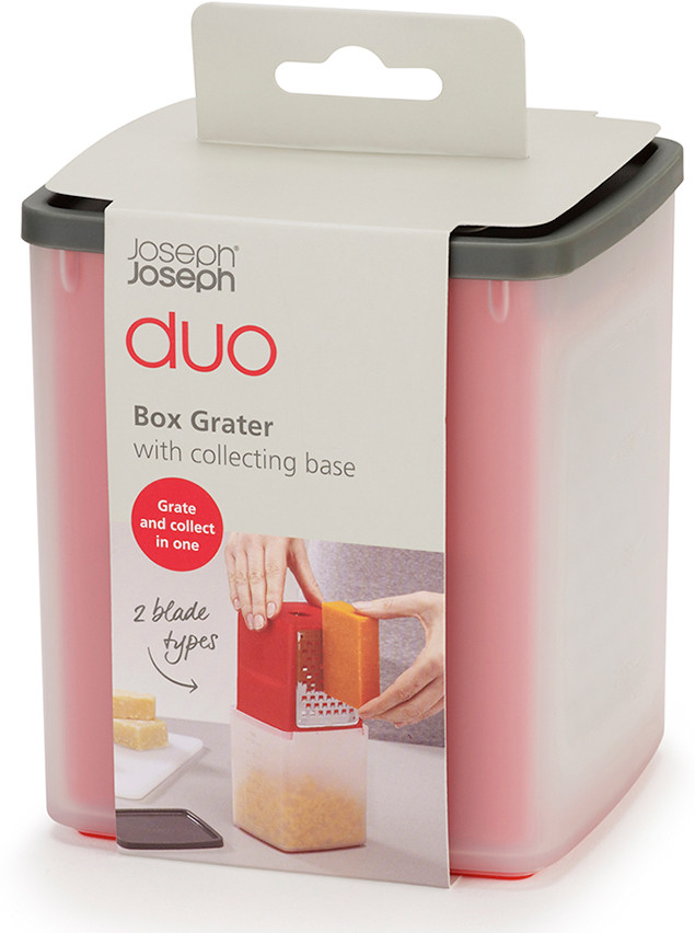 Эргономичная тёрка с контейнером идеально подойдет для измельчения сыра, моркови и других продуктов. Крупное и мелкое лезвия из нержавеющей стали не затупляются и равномерно измельчают твёрдые продукты. Для безопасного и удобного хранения тёрка убирается внутрь контейнера.