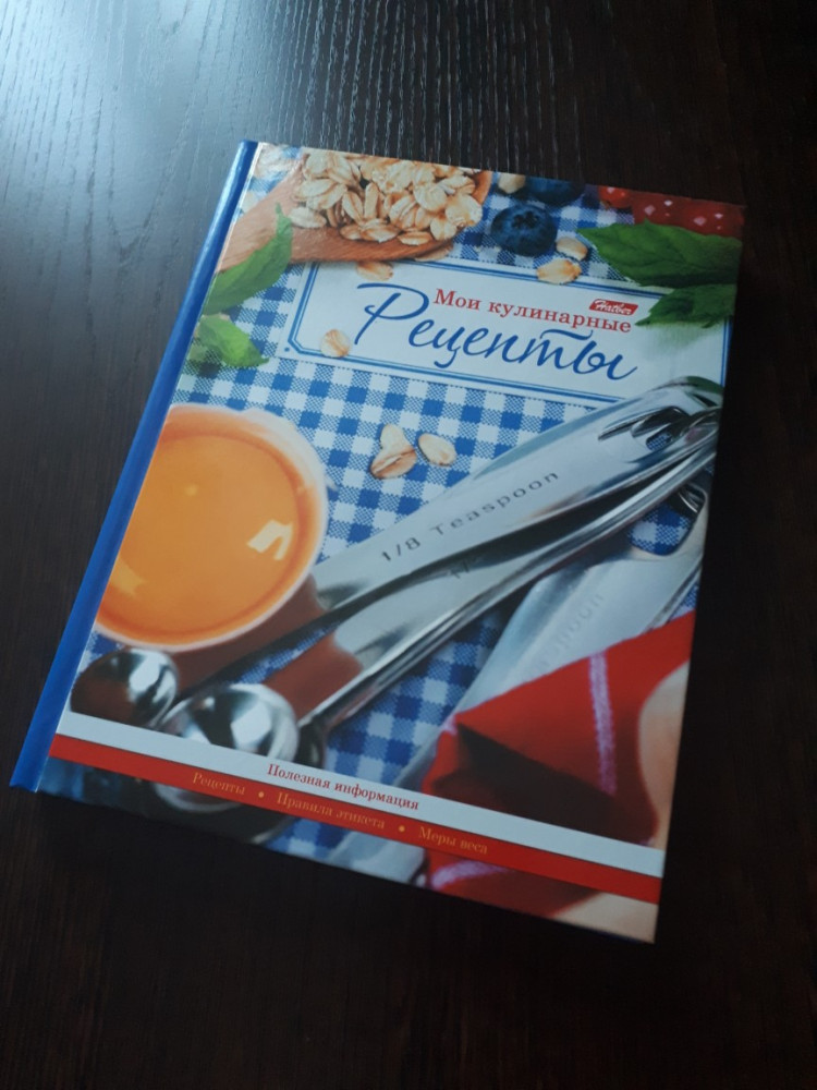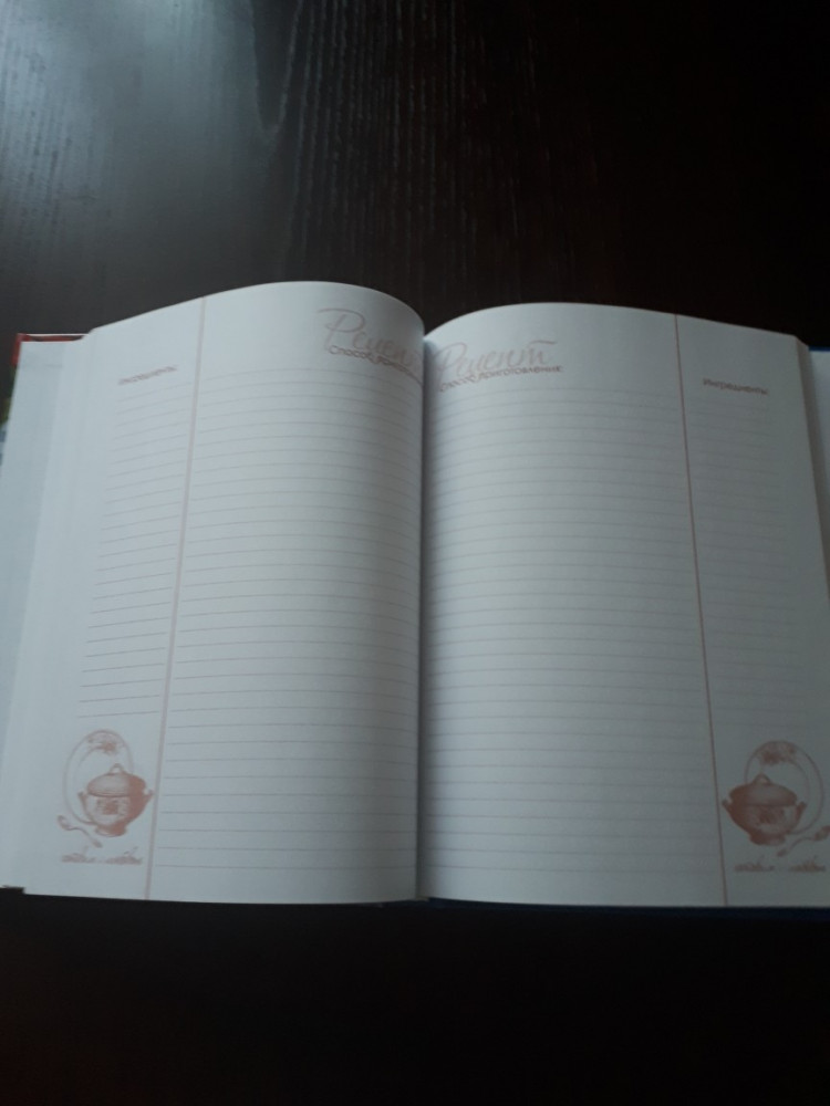 Отличная книга для рецептов. Качественная. Хороший твердый переплет. Красиво оформленные страницы. Рекомендую.