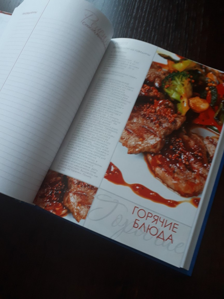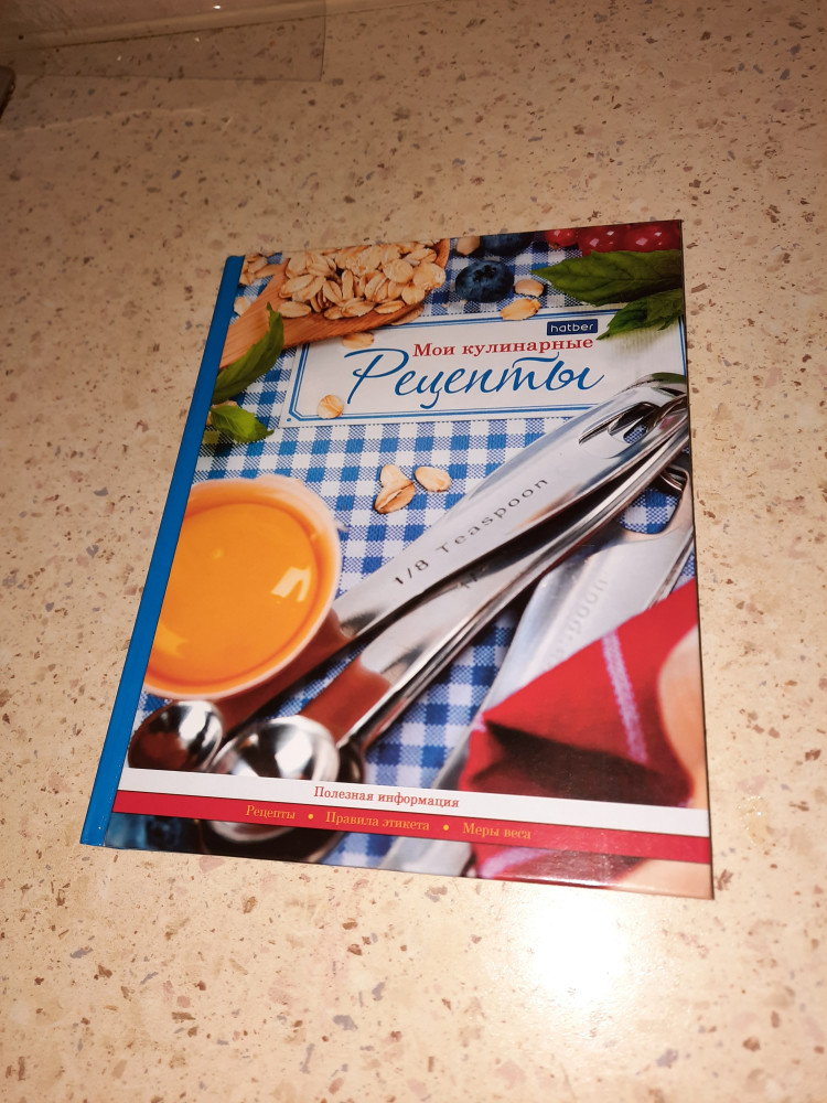 Книга классная! Переплет жесткий, листы плотные. Много места для ингридиентов и для самого рецепта. На разделителе с обратной стороны полезные советы, меры и тд. Класс! Спасибо!