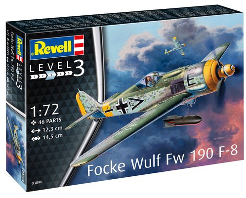 Revell Сборная модель «Немецкий истребитель Focke Wulf Fw190 F-8» (1:72)В данный момент этот товар отсутствует в продаже. Возможно, у нас найдется аналогичный или похожий товар здесь. Серия: Самолеты Модель детально и достоверно проработана. Детали требуют сборки с помощью специального клея и последующей окраски. Всего 46 деталек. Длина изделия 14 см. |