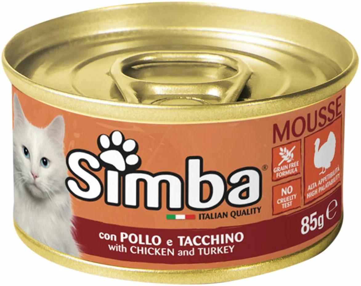 ТМ Simba Корм для кошек «Мусс цыпленок/индейка» (85 г)+18 нежная структура подходит котятам приятный запах невкусный