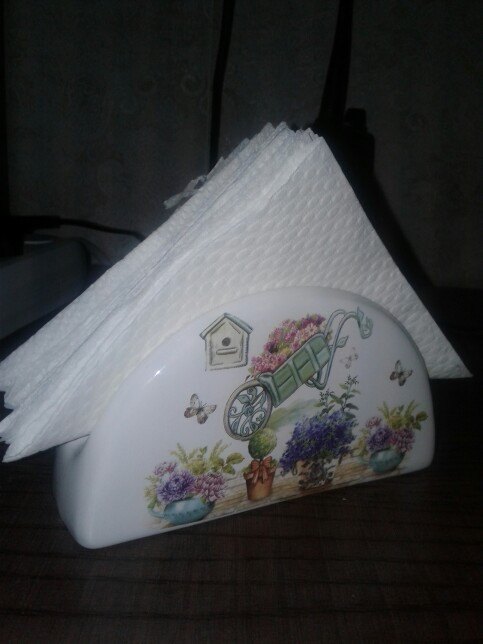 Рисунок чёткий, яркий. Пришла без сколов. Вместимость 7-8 шт (как сложено на фото), если больше, салфетки поднимаются (соскальзывают)