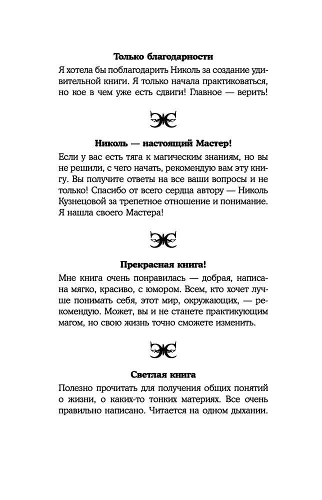 Книга читается конечно очень легко, но книга по моему мнению бесполезная, там только рассказ как надо работать с энергиями. А так как я считаю себя уже более практиком чем начинающим, то это книга только для начинающих. Спасибо магазину за доставку.
