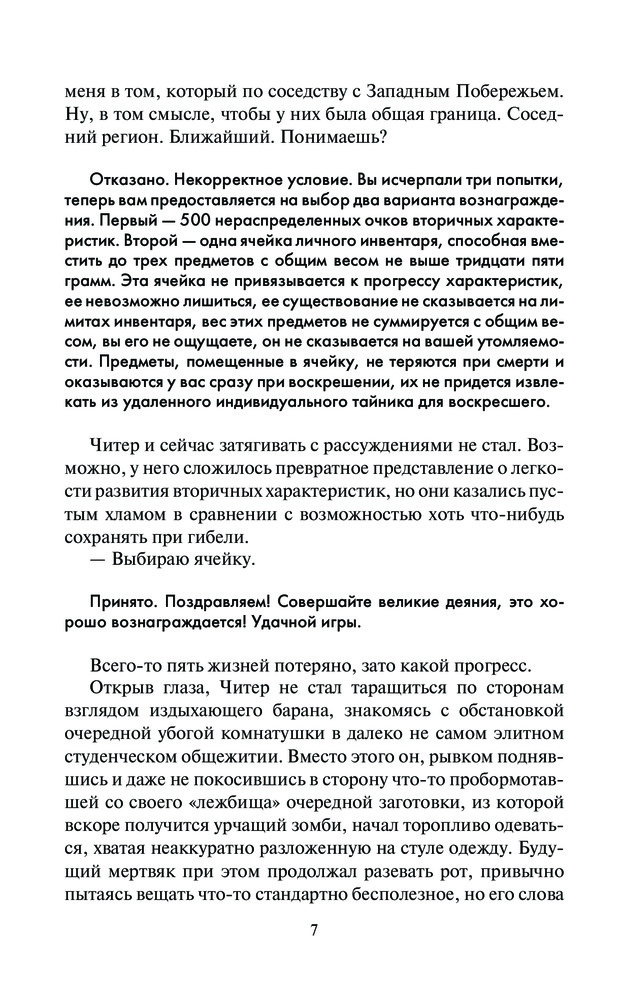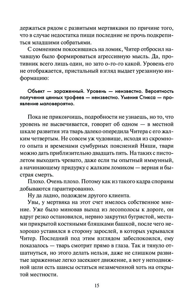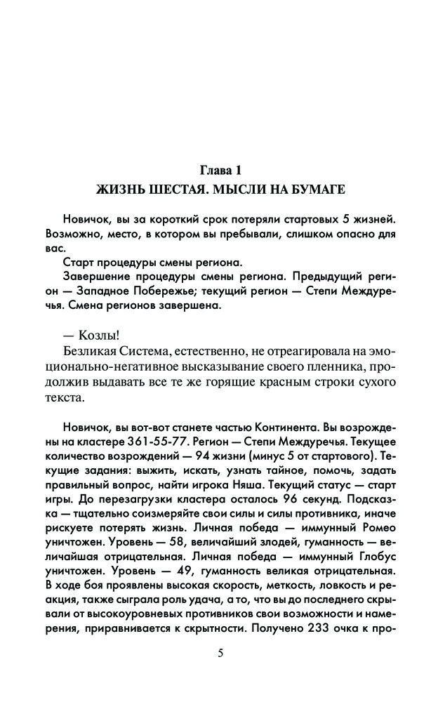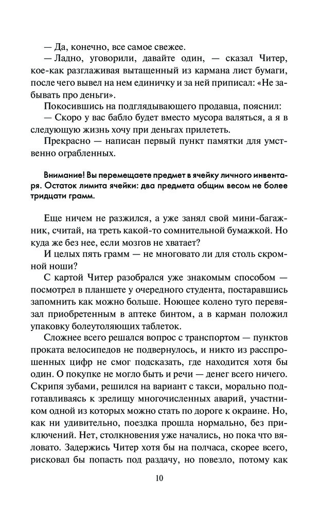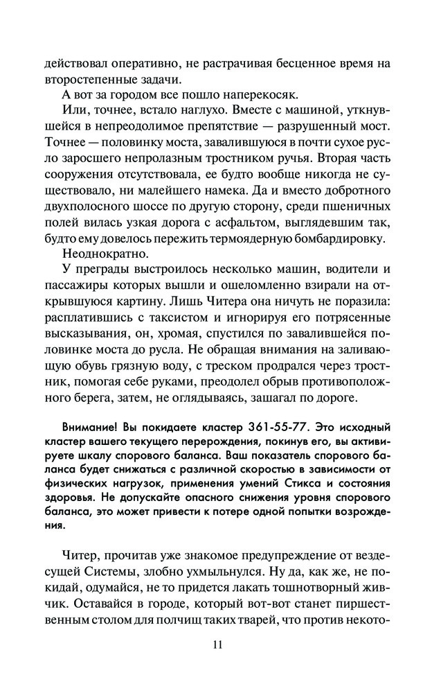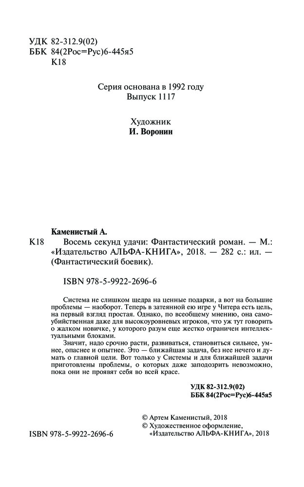 Восемь секунд удачиВ данный момент этот товар отсутствует в продаже. Возможно, у нас найдется аналогичный или похожий товар здесь. Серия: Фантастический боевик Система не слишком щедра на ценные подарки, а вот на большие проблемы — наоборот. Теперь в затеянной ею игре у Читера есть цель, на первый взгляд простая. Однако, по всеобщему мнению, она самоубийственная даже для высокоуровневых игроков, что уж тут говорить о жалком новичке, у которого разум еще жестко ограничен интеллектуальными блоками.Значит, надо срочно расти, развиваться, становиться сильнее, умнее, опаснее и опытнее. Это — ближайшая задача, без нее нечего и думать о главной цели. Вот только у Системы и для ближайшей задачи приготовлены проблемы, о которых даже заподозрить невозможно, пока они не проявят себя во всей красе. |