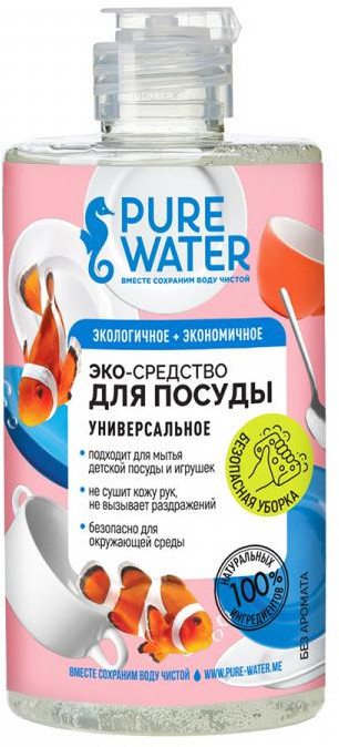 Pure Water Средство для мытья посуды гипоаллергенное+25 безопасный состав отмывает жир нет запаха не сушит высокий расход