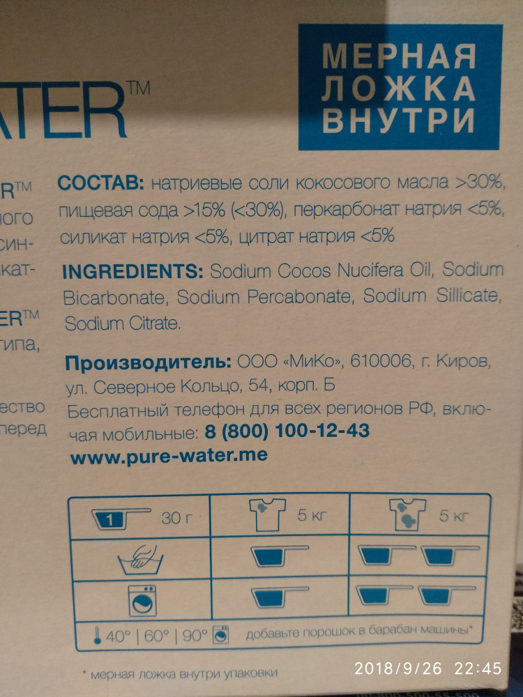 Вместе сохраним воду чистой! Большое спасибо, Флип, за Pure Water! Пока все нравится, коробка жёсткая, устойчивая, нет необходимости пересыпать порошок, даже мерный стакан из картона, понимаете))) Порошок хорошо пенится при 40°, бельё без запаха, смотрите фото