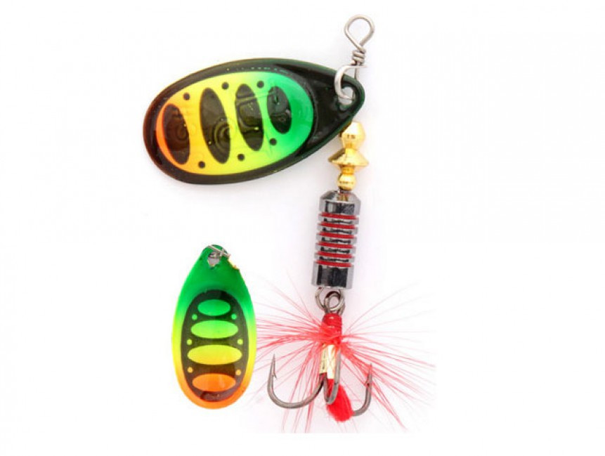 Bonnie Blade — новая серия вращающихся блесен Lucky John. В этих приманках используются современные конструктивные решения, которые обеспечивают надежную и стабильную игру блесен, и, что самое главное, делают их очень привлекательными для любой хищной рыбы. Главный элемент блесен — вращающийся лепесток. Он очень легок, сделан из латуни и обладает хорошими динамическими показателями при вращении в воде, что позволяет делать проводку приманки на минимальной скорости. Лепесток «заводится» сразу, как только блесна начинает движение. Лепестки окрашены с двух сторон. С какой бы стороны хищная рыба не смотрела на приманку, ее расцветка остается одинаковой и привлекательной, что повышает интерес к блесне и, в итоге, приводит к результативной атаке. Немаловажная деталь — сердечник приманок, от которого зависит вес и дальнобойность приманки, а также ее устойчивость в воде. На всех тройниках связана яркая мушка, основное предназначение которой — снять последние сомнения у приготовившейся к атаке хищной рыбы.
