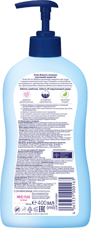 Мягкая формула с ромашкой и протеинами пшеницы бережно очищает и ухаживает за кожей малыша с головы до пяточек, снабжает влагой и уменьшает ощущение сухости, поддерживает естественный защитный барьер кожи. Моющие компоненты на растительной основе. При ежедневном мытье кожа остается мягкой и эластичной. Гель удобен в использовании благодаря практичному дозатору. Гель разработан с целью минимизировать риск возникновения аллергических реакций. Не содержит парабенов, силикона, красителей, микропластика. Веганский продукт. Одобрено дерматологами. Благодаря своей увлажняющей формуле идеально подходит для мытья рук.