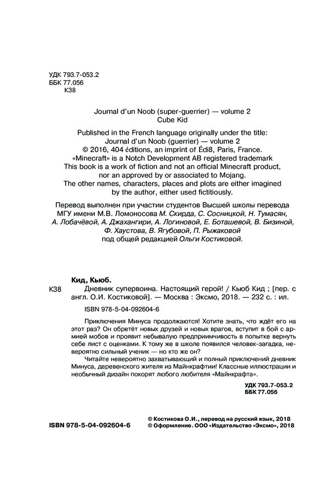 💳 Оплатить за товар можно при получении 🇰🇿 Есть бесплатная доставка по Казахстану от 1 дня 🎁 Копите бонусы с каждой покупки Серия: Майнкрафт. Дневник воина Вторая книга в новой серии художественной литературы по «Майнкрафт», самой популярной игре последних лет. Цветные иллюстрации и формат дневника не оставят читателей равнодушными. Минус — обычный юный житель деревни. В его 12 лет многие вокруг считают его неудачником, и он мечтает доказать всем, что он может достичь большего. Хотите знать, что ждёт его на этот раз? Он обретёт новых друзей и новых врагов, вступит в бой с армией мобов и проявит небывалую предприимчивость в попытке вернуть себе лист с оценками. К тому же в школе появился человек-загадка, невероятно сильный ученик — но кто же он? Майнкрафт — очень популярная игра, в которую играют дети по всему миру. |