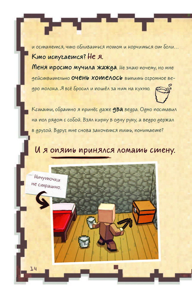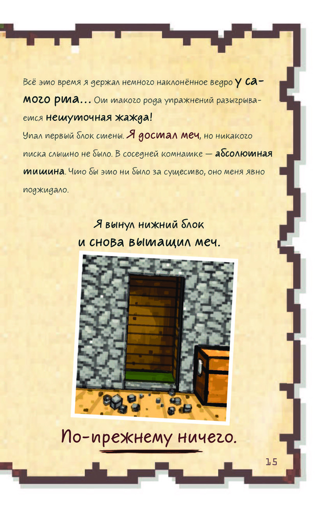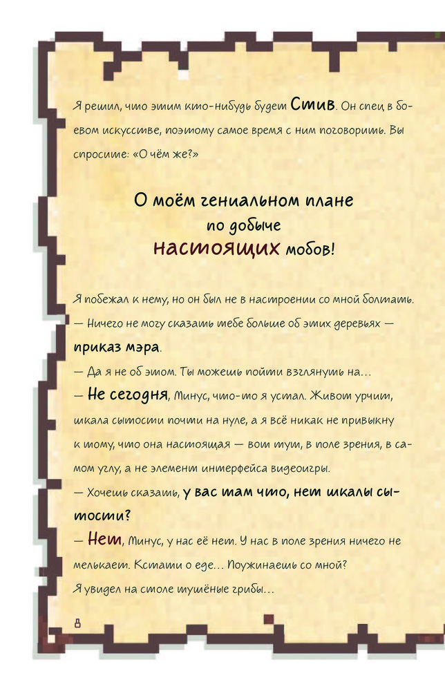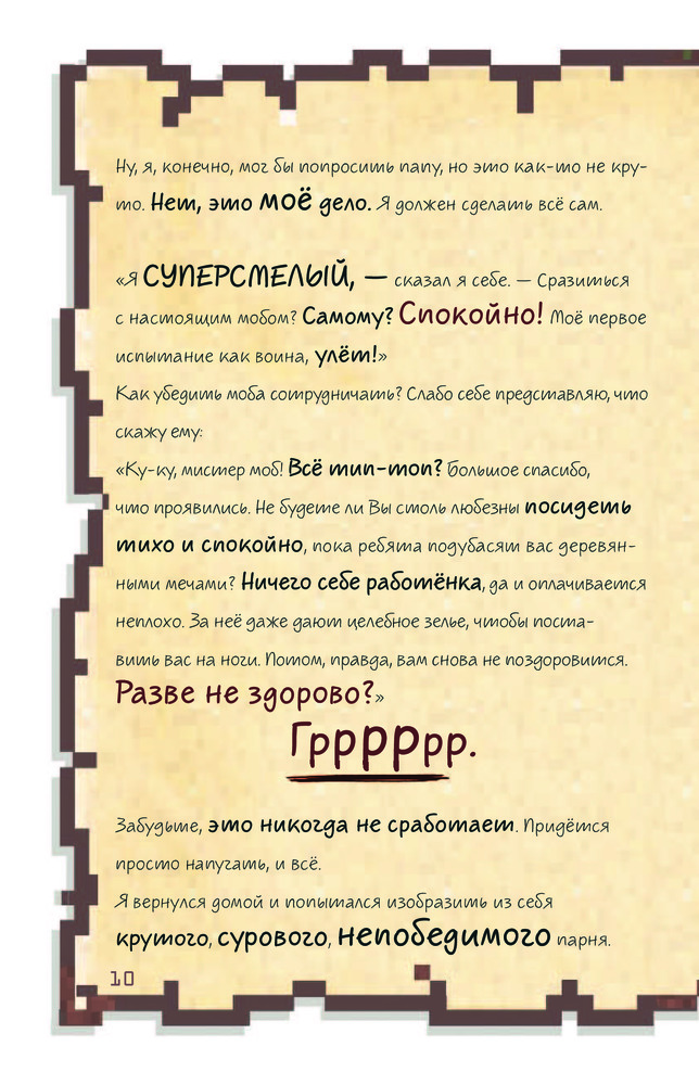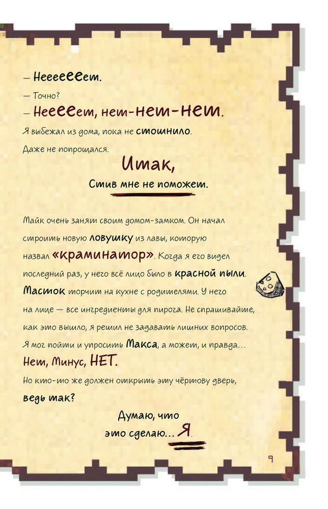 Книгу приобрела для сына. Ему 10 лет, читать не любит, но с этой книгой не расстаётся. Обложка книги плотная, яркая. Шрифт в стиле игры Майнкрафт, но для чтения не очень удобен, поэтому 4 звезды.